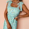 ① 《Elegant Lace Shoulder Straps》: The Green Floral Lace Tied Strap Empire Waist Maxi Dress features delicate lace shoulder straps that add a touch of elegance and sophistication to your look.
