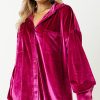 1. Elegant and Cozy: Elevate your personal style with this bright pink velvet chest pocket shirt, featuring a soft and luxurious fabric that exudes elegance and sophistication.