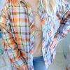 ③ 《Vibrant Orange Plaid Print》: The orange plaid print on this buttoned shirt adds a pop of color to any outfit, making it perfect for fall and autumn seasons. The classic plaid pattern is timeless and versatile.