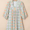① 《Chic and Comfy Design》: The Green Geometric Floral Print 3/4 Sleeve Notched Neck Mini Dress offers a perfect blend of style and comfort, making it an ideal choice for any outing.