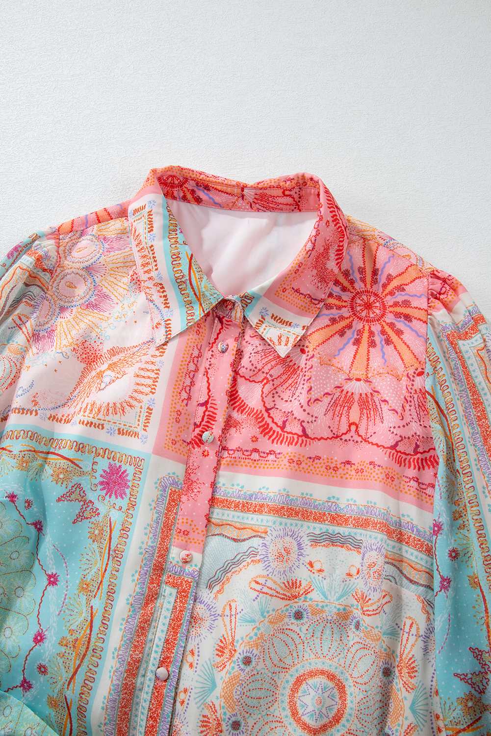 1. Chic and Colorful: Embrace your style with this Pink Patchwork Print Bubble Sleeves Belted Plus Size Dress. Its lightweight material features panels of vibrant and eye-catching prints, perfect for adding a pop of color to your wardrobe.
