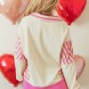 1. Trendy Striped Patchwork: The Pink Stripe Patchwork Sequin Heart Pattern Long Sleeve Collared Split Top features a chic striped patchwork design that combines timeless style with modern flair.