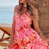 ① 《Chic Floral Print》: The Red Floral Spaghetti Strap Surplice Neck Shirred Waist Mini Dress features a stunning floral print that ensures you stand out in any setting.